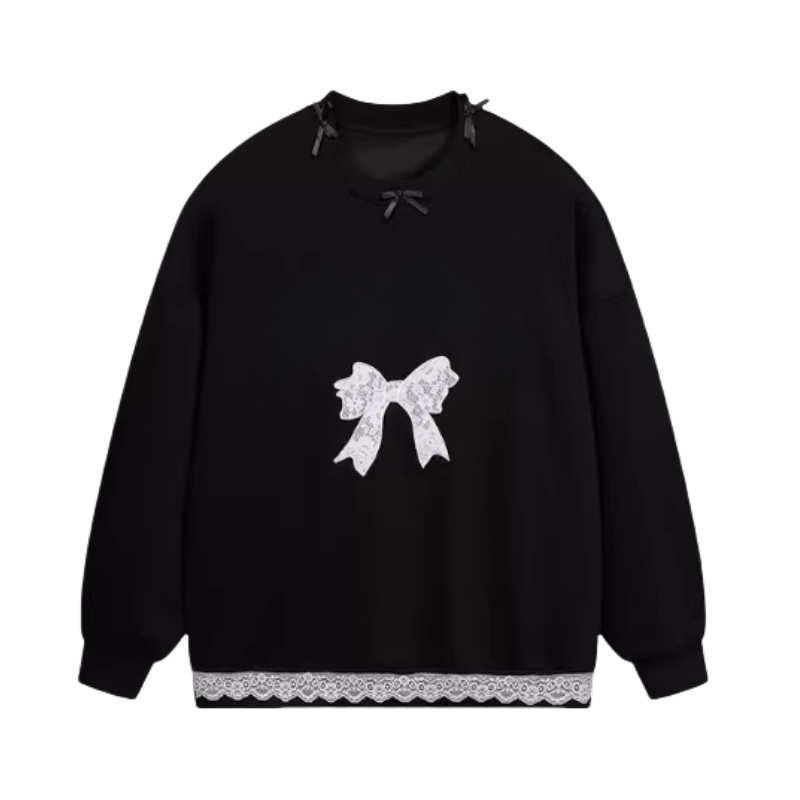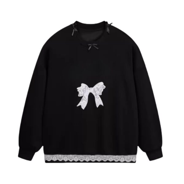 Black Sweatshirt With Bow Lace